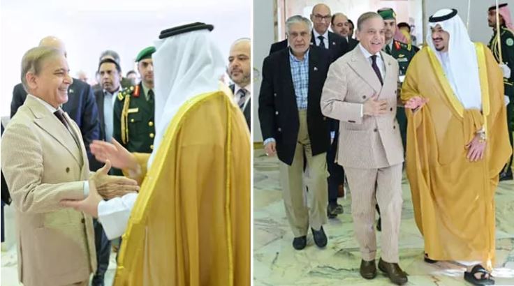Upon his arrival in Riyadh, Prime Minister Shehbaz Sharif was greeted by Saudi Air Force F-15 fighter jets, a 21-gun salute, and a formal military protocol by the Saudi armed forces.