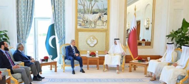 Doha: Prime Minister Shehbaz Sharif held a high-level meeting on Thursday with Qatar’s Emir Sheikh Tamim bin Hamad Al Thani in Doha, where both leaders emphasized the need for restraint, reduced tensions, and continued dialogue amid the evolving regional situation.