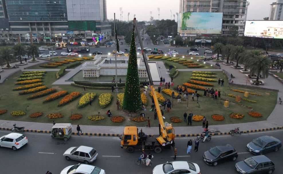 لاہور: لاہور کے لبرٹی چوک کو کرسمس کے تہوار کے موقع پر دلکش انداز میں سجایا گیا ہے، جس میں 42 فٹ بلند کرسمس ٹری شامل ہے۔ شہری اور سوشل میڈیا صارفین اس اقدام کی بھرپور تعریف کر رہے ہیں۔