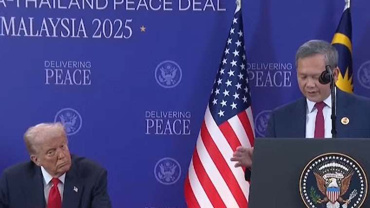 کوالالمپور : امریکا کے صدر ڈونلڈ ٹرمپ کی موجودگی میں تھائی لینڈ اور کمبوڈیا کے درمیان ایک اہم امن معاہدے پر دستخط کیے گئے ہیں۔ یہ معاہدہ ملائیشیا کے دارالحکومت کوالالمپور میں منعقدہ ایک تقریب کے دوران طے پایا، جس کا مقصد دونوں ممالک کے درمیان سرحدی تنازعات کو ختم کرنا اور علاقے میں پائیدار امن کا قیام ہے۔