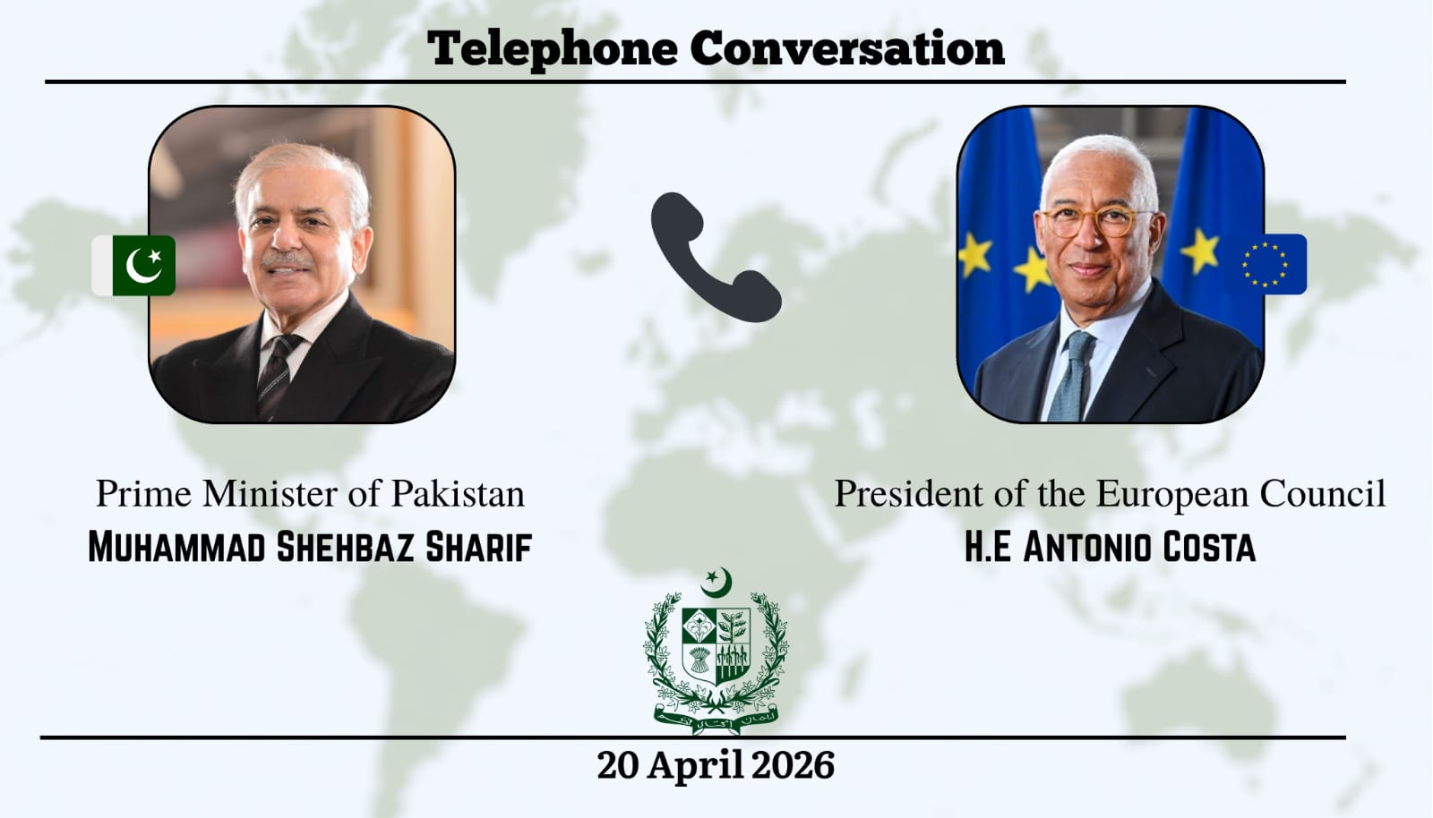 Prime Minister Muhammad Shehbaz Sharif received a telephone call this evening from H.E. António Costa, President of the European Council.