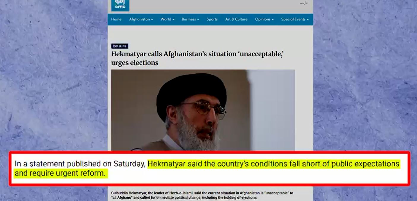افغانستان میں طالبان کی گرفت کمزور: گلبدین حکمت یار نے موجودہ نظام کو مسترد کر دیا