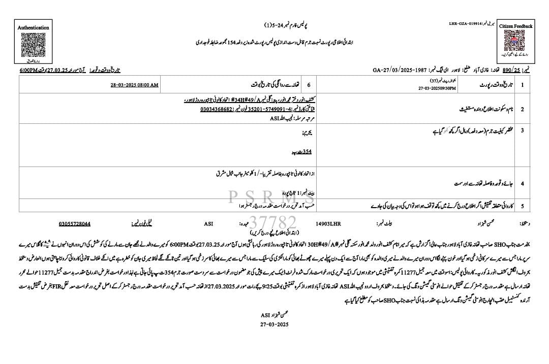 تاج پورہ لاہور کی ایک کم عمر لڑکی نے ورچوئل ویمن پولیس اسٹیشن کو اطلاع دی کہ اس کے والد نے مبینہ طور پر اسے تشدد کا نشانہ بنایا، اور شیشے کا گلاس سر پر مارا جس سے وہ زخمی ہو گئی۔ متاثرہ لڑکی کے مطابق والد نے والدہ اور بھائی پر بھی ہاتھ اٹھایا، جس پر پولیس نے مقدمہ درج کر لیا۔