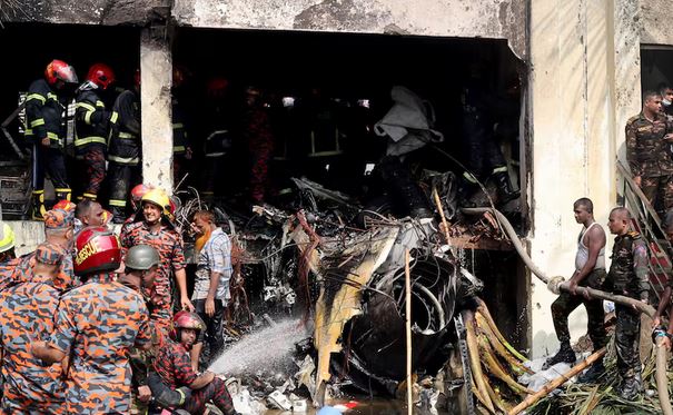 ڈھاکہ :ڈھاکہ کے علاقے اُتارا میں بنگلہ دیش ایئرفورس کا ایف-7 بی جی آئی طیارہ ایک کالج کی عمارت پر گر کر تباہ ہو گیا۔ حادثے میں 19 افراد جاں بحق اور متعدد زخمی ہو گئے۔
