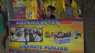 واشنگٹن ڈی سی میں بھارت کے سفارتخانے پر یوم آزادی کی تقریب کے دوران سکھ مظاہرین کی بڑی تعداد…